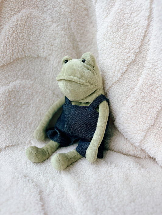 Denim Overalls Outfit for Jellycat Fergus Frog | Cute Plush Clothing | Jellycat Frog Outfit