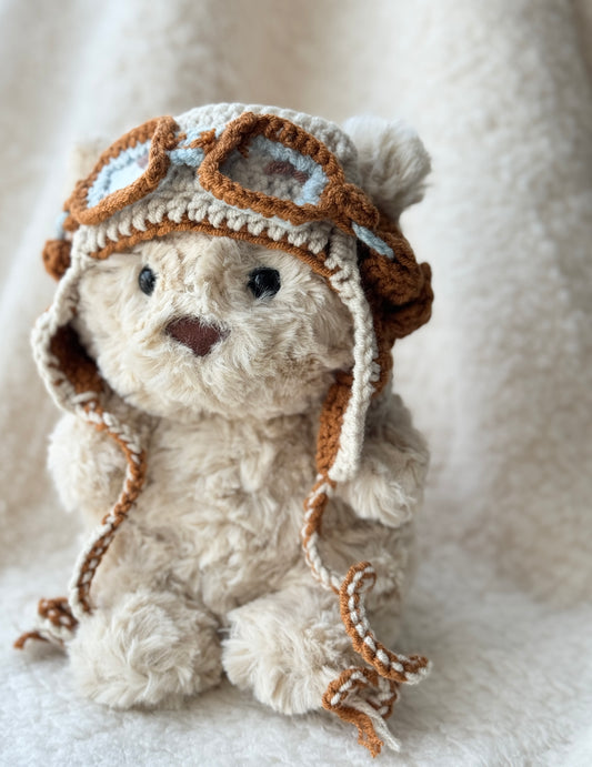 Vintage Pilot Bonnet with Goggles | Handmade Crochet Aviator Hat for Jellycat Bart Junior Bear