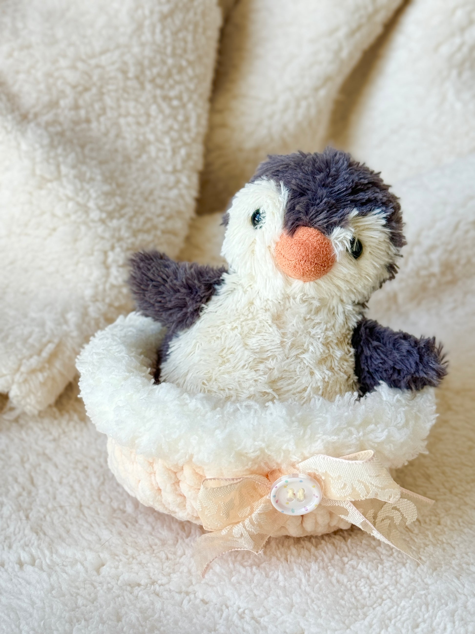 Give your Jellycat or plush toy the coziest spot to rest with this handmade crochet plush nest. Designed in soft beige tones with a fluffy rim, it’s perfect for adding warmth and charm to your plush collection display.